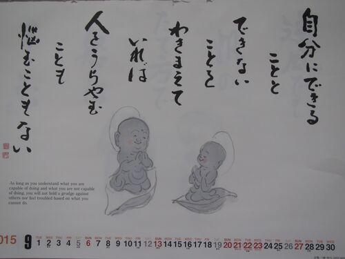 こんにちは(^。^)/ 朝から雨雲が居座って、どんよりとしたお天気です。 いよいよ明日から9月ですね。秋晴れの空が待ちどうしいです。 今日は、9月のカレンダーの言葉をご紹介しますね。 まずは自分を知ることが大事なのですね。